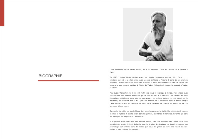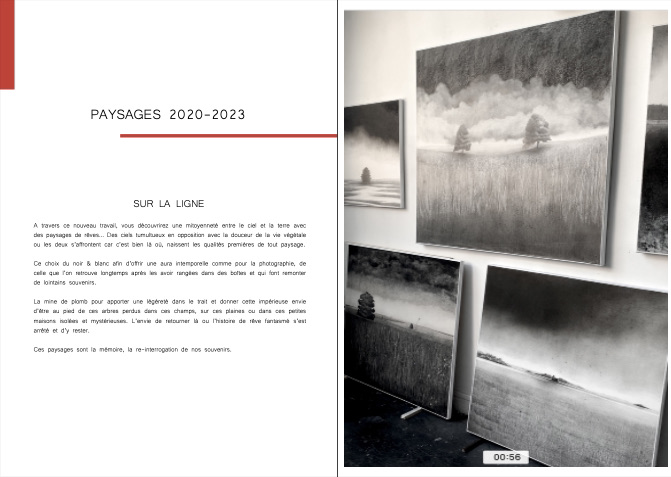 Le but de ce projet était de créer un portfolio PDF interactif pour un artiste plasticien afin qu’il puisse démarcher des galeries d’art contemporain en présentant son travail de manière professionnelle avec sa biographie, les photos de ses oeuvres incluant technique, formats ainsi que les expositions et salons auxquelles il a participé. Tout cela comme un livre que l’on feuillette avec des liens interactifs qui renvoient directement vers soit son site web soit son adresse e-mail.