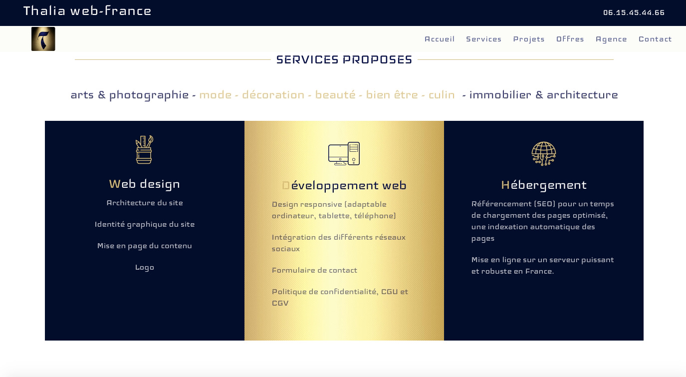 • Descriptif des services proposées lorsque l’on passe la souris sur l’image