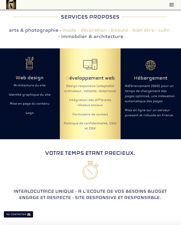 Un site de prestations de services réalisé sous wordpress sans modèle d’architecture. Vous pourrez à travers ce site, ma personnalité, mon sens de l’esthétique ainsi que mes compétences en web design (UI-UX) & communication.