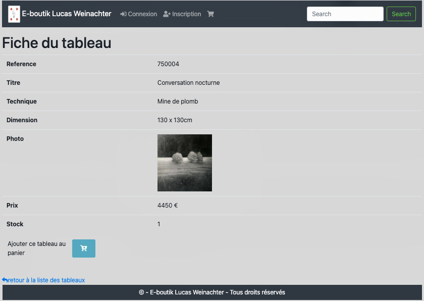 Vous trouverez ci-dessous le projet d’une e-boutique pour un artiste plasticien réalisé sur « symfony » en seulement une semaine, après uniquement 15 jours de formation.