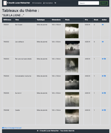 Le site e-boutik de Lucas Weinachter, lui permet en tant qu’artiste plasticien, de présenter son dernier travail sur les paysages à travers deux thèmes ainsi que ses oeuvres et de les proposer à la vente.